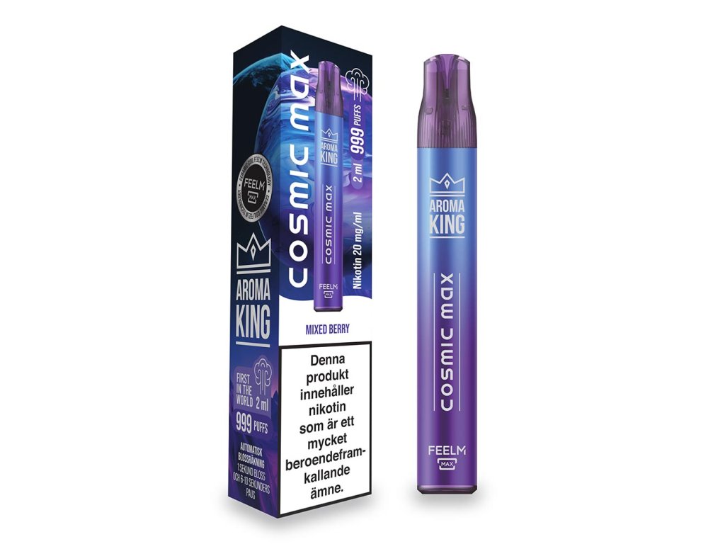 Jednorázová e-cigareta Aroma King Cosmic Max 999 Mixed Berry s příchutí lesních plodů nabízí sladkou a výraznou chuť lesních jahod, malin a borůvek.