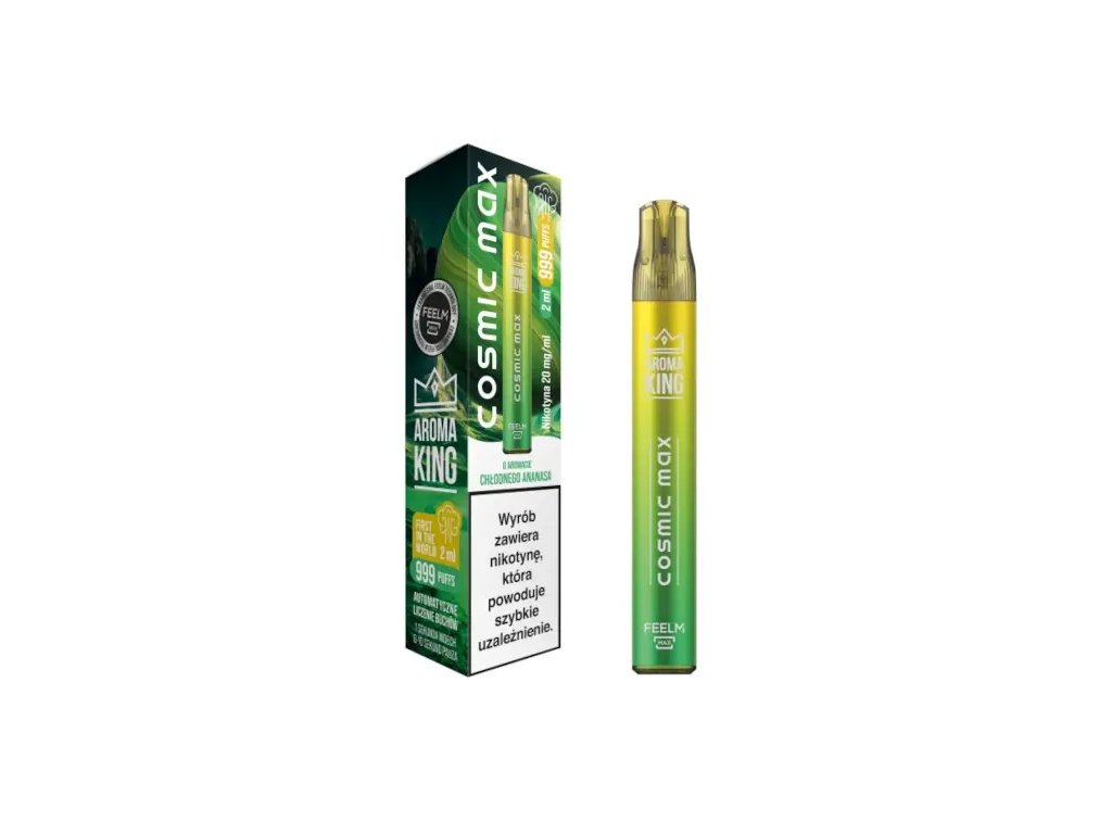 Elektronická cigareta Aroma King Cosmic Max 999 s obsahem 20 mg nikotinu a 2 ml e-liquidu. Tato e-cigareta nabízí intenzivní požitek z vapování bez potřeby nabíjení či doplňování. Ideální volba pro vapery, kteří hledají pohodlnost a vynikající chuť v jednom.