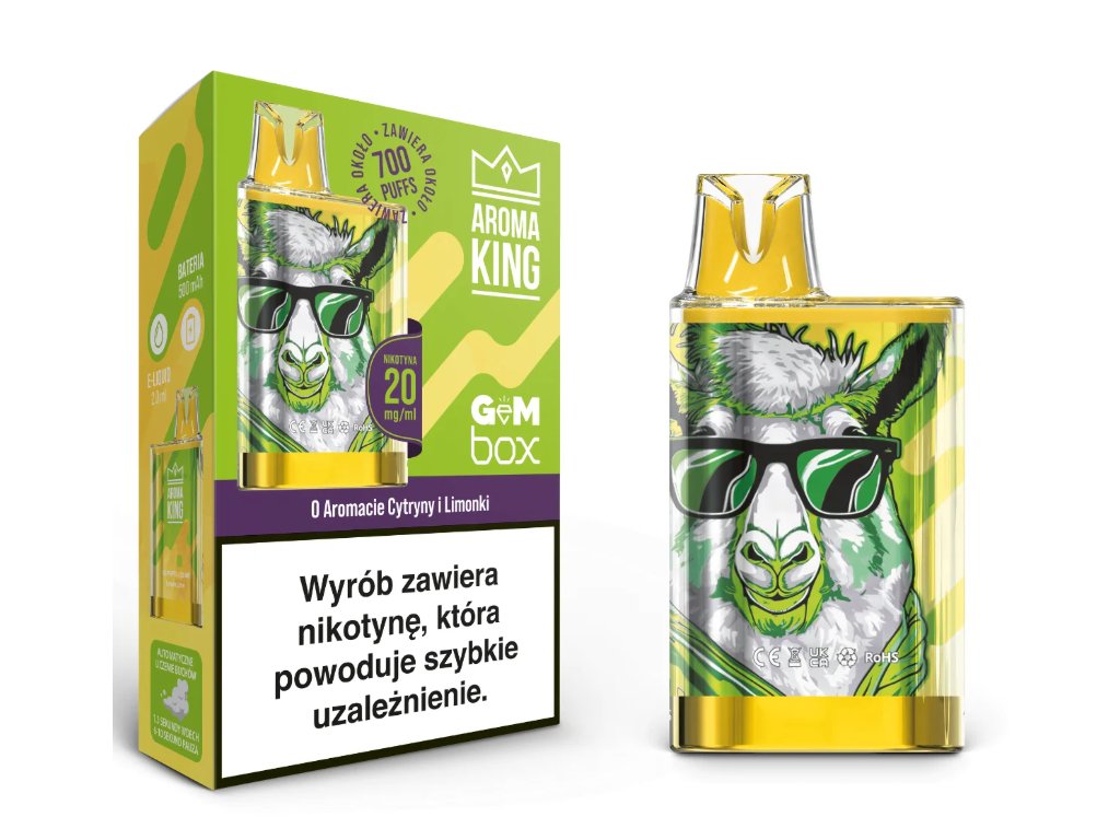 Vyzkoušejte naší jednorázovou e-cigaretu Aroma King Gem Box 700 Lemon Lime, která kombinuje jiskřivou kyselost citronu s jemně sladkou limetkou pro dokonale letní chuťový zážitek.