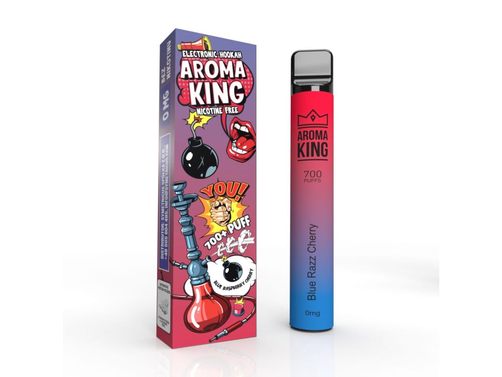 Jednorázová e-cigareta Aroma King Hookah 700+ s příchutí Blue Razz Cherry je kombinací malin a třešní.