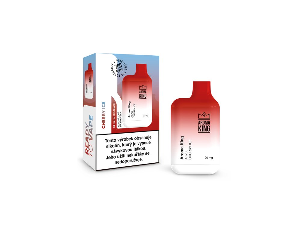 Jednorázová e-cigareta Aroma King Mini 700 Cherry Ice zachycuje bohatou sladkost čerstvých třešní, kterou doplňuje chladivý ledový nádech. Každý potah je osvěžující a plný intenzivní třešňové chuti.
