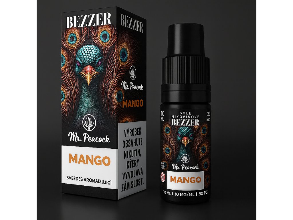 E-liquid Mr. Peacock Mango přináší intenzivní chuť sladkého a šťavnatého zralého manga, která potěší všechny milovníky exotických ovocných příchutí.